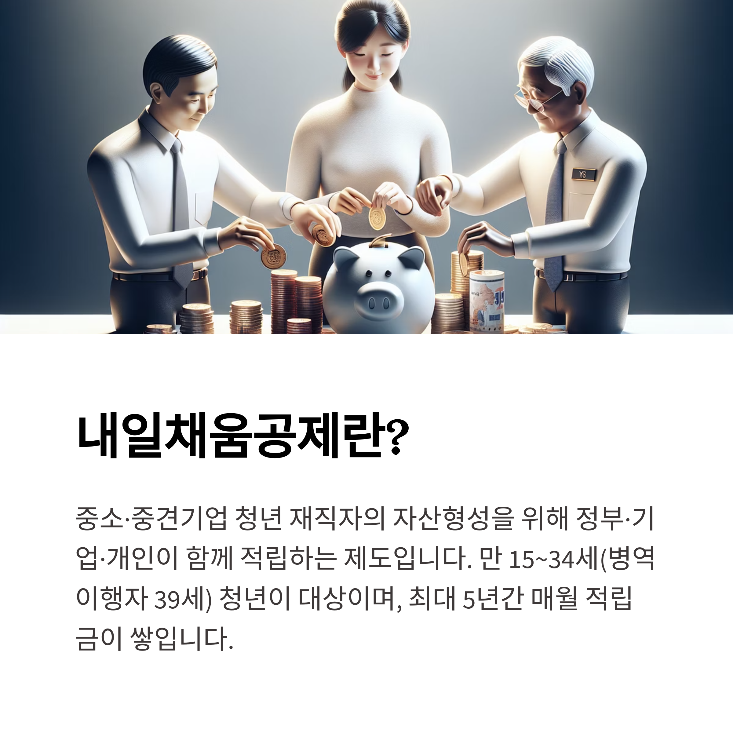 | 내일채움공제 | 중소기업 장기 근속 및 자산 형성 | 만 15~34세 (유형별 상이) | 2년/3년/5~10년, 1200만원 이상 | 기업 참여 필수, 장기 근속 유도 |