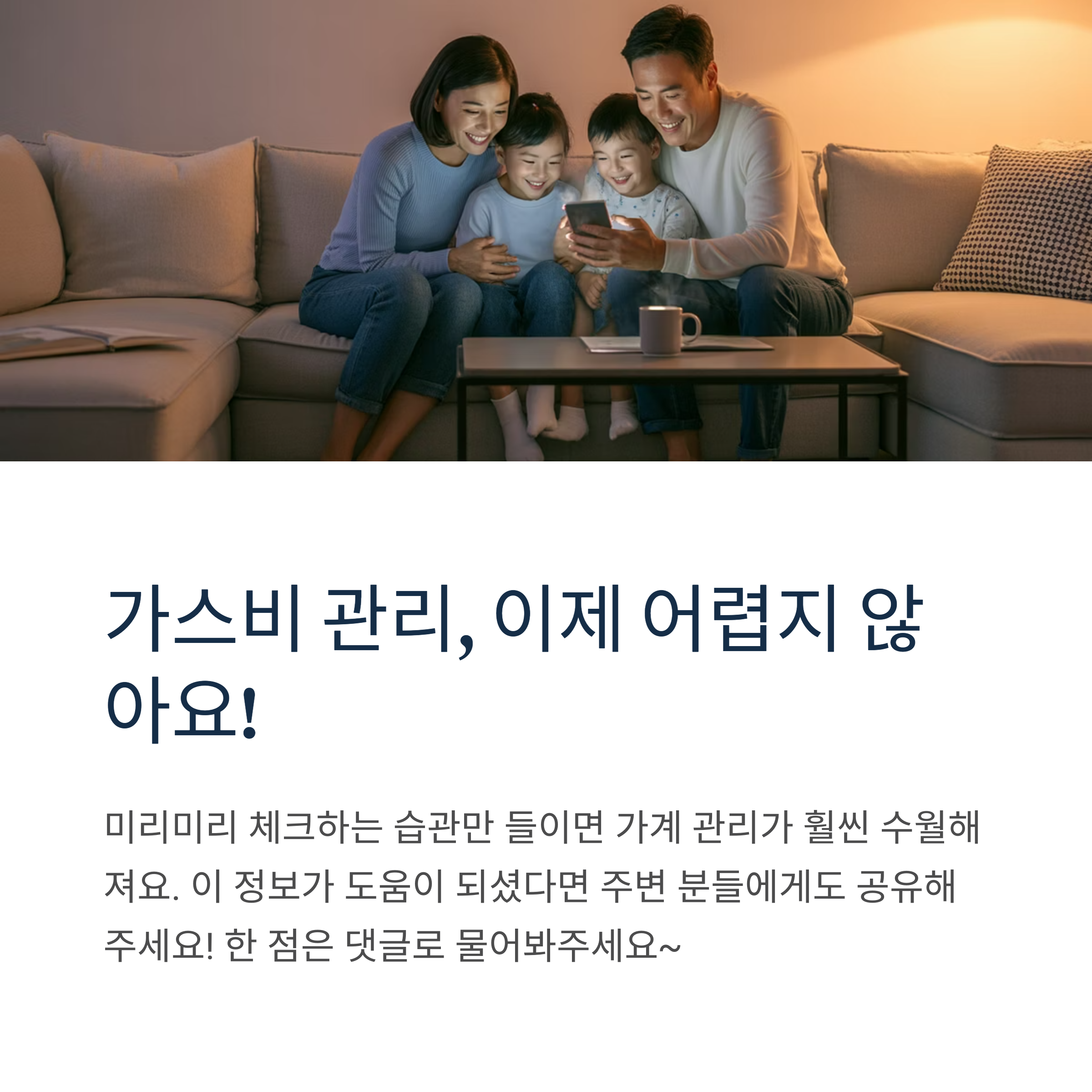민수씨처럼 주기적으로 체크하고 자동이체까지 설정해두니까 가스비 스트레스가 완전히 사라졌다고 하더라고요. 여러분도 이런 식으로 관리해보세요!