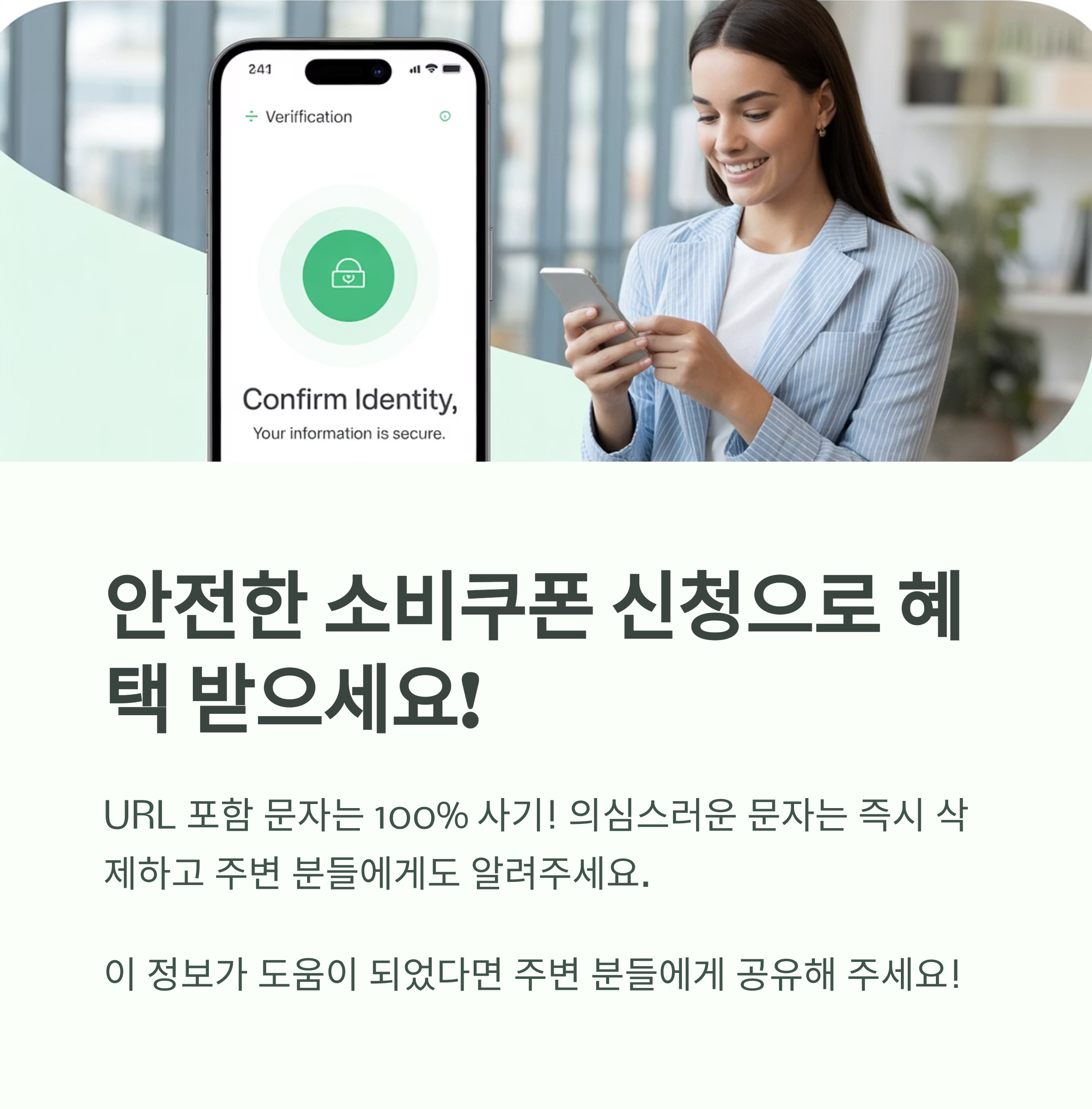 가장 중요한 사실은 정부나 카드사에서 보내는 공식 문자에는 인터넷주소(URL)가 절대 포함되지 않는다는 점입니다. 따라서 민생회복 소비쿠폰과 관련하여 URL이나 링크가 포함된 모든 문자는 스미싱 사기로 봐야 합니다.
