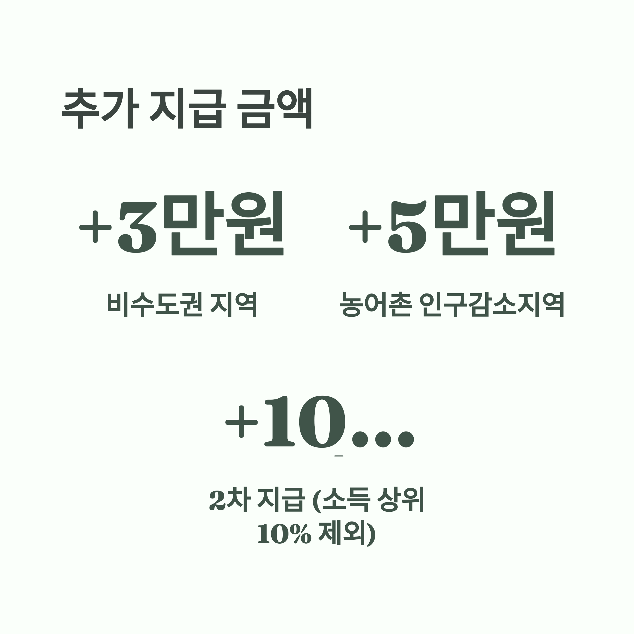 전 국민을 대상으로 1차, 2차에 걸쳐 차등 지급됩니다. 소득 수준과 거주 지역에 따라 최소 15만원부터 최대 55만원까지 받을 수 있습니다.