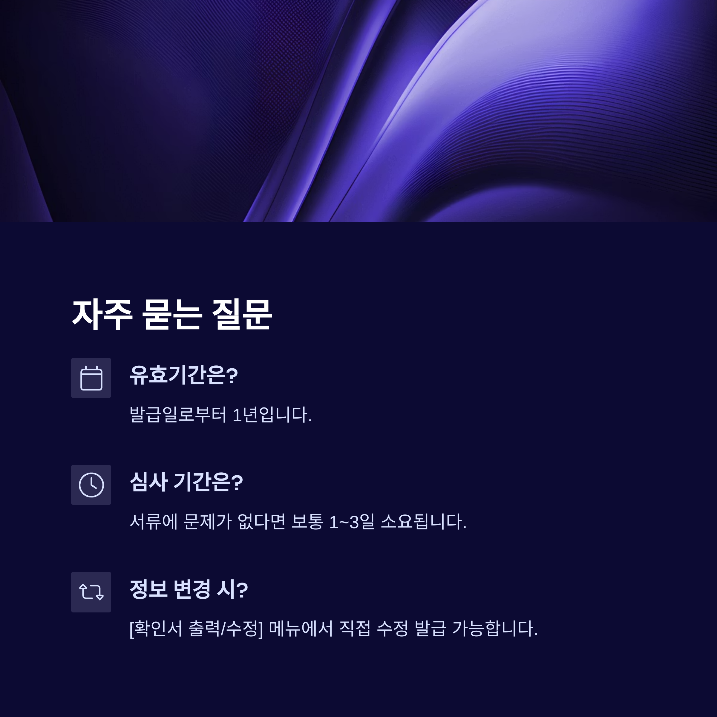 Q: 발급 후 사업장 주소나 대표자가 변경되면 어떻게 하나요?