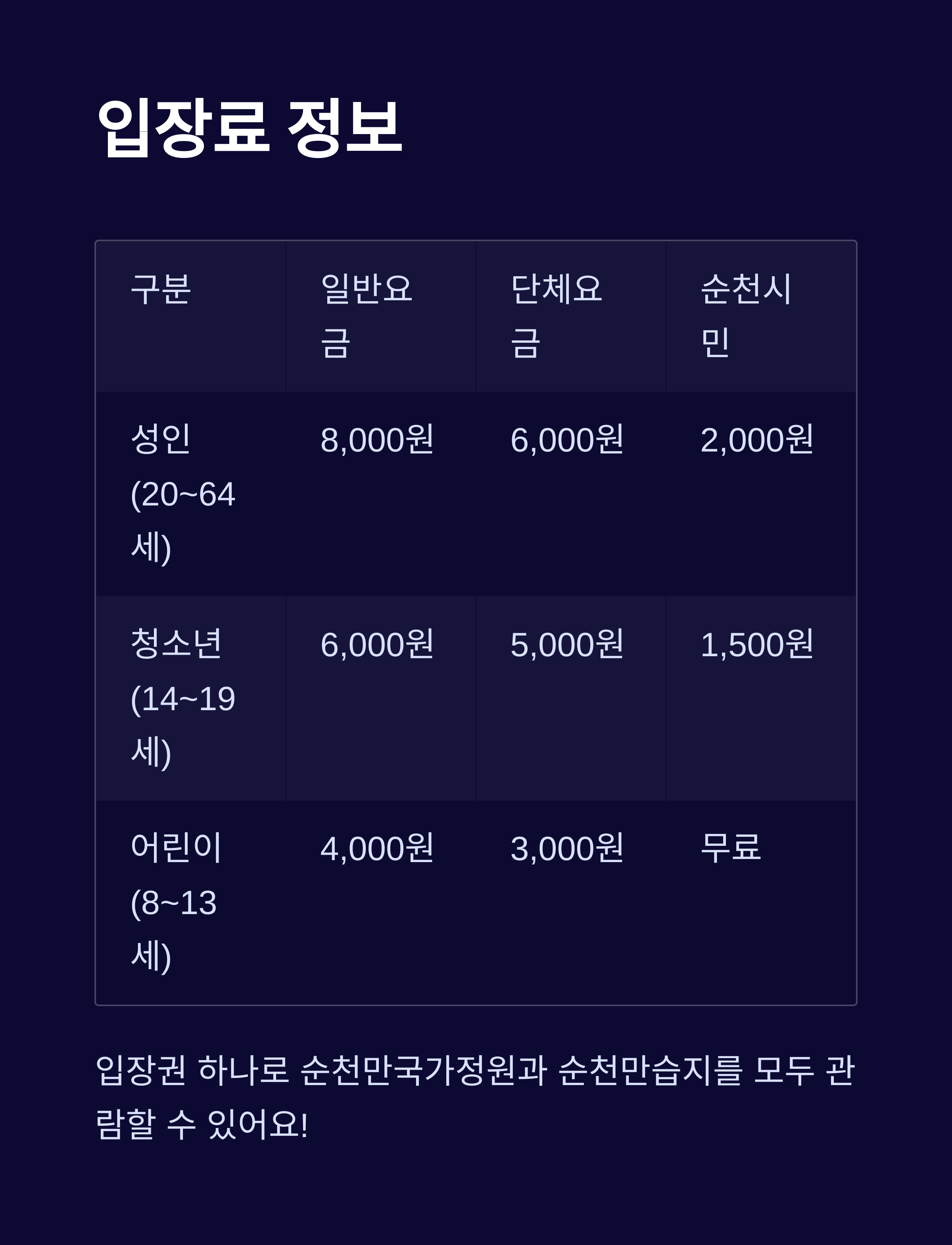 - 순천시민: 10,000원 (추가 관광지 포함)