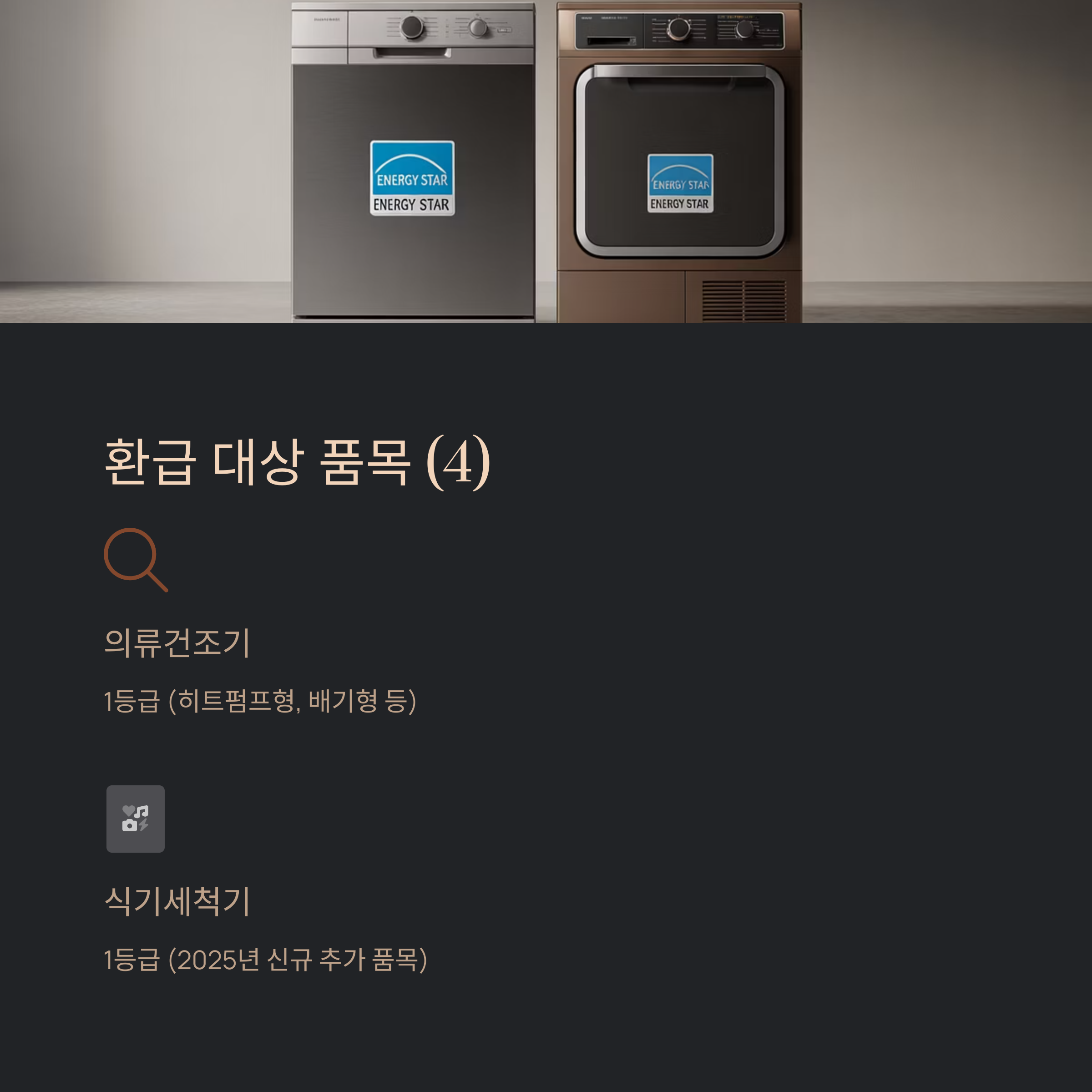 | 식기세척기 | 1등급 | 2025년 신규 추가 품목 |