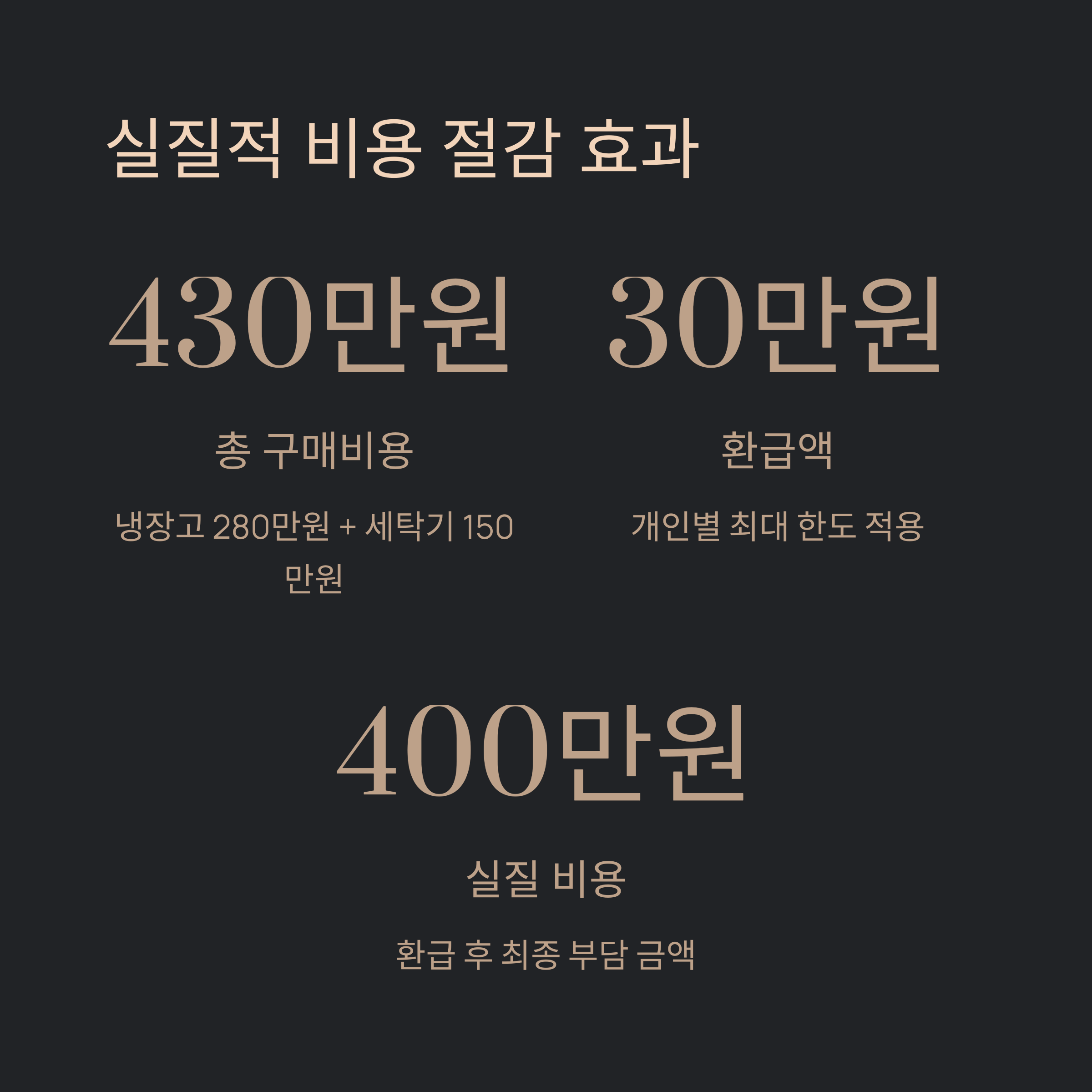 - 실질적인 가전제품 구매 비용: 430만원 - 30만원 = 400만원