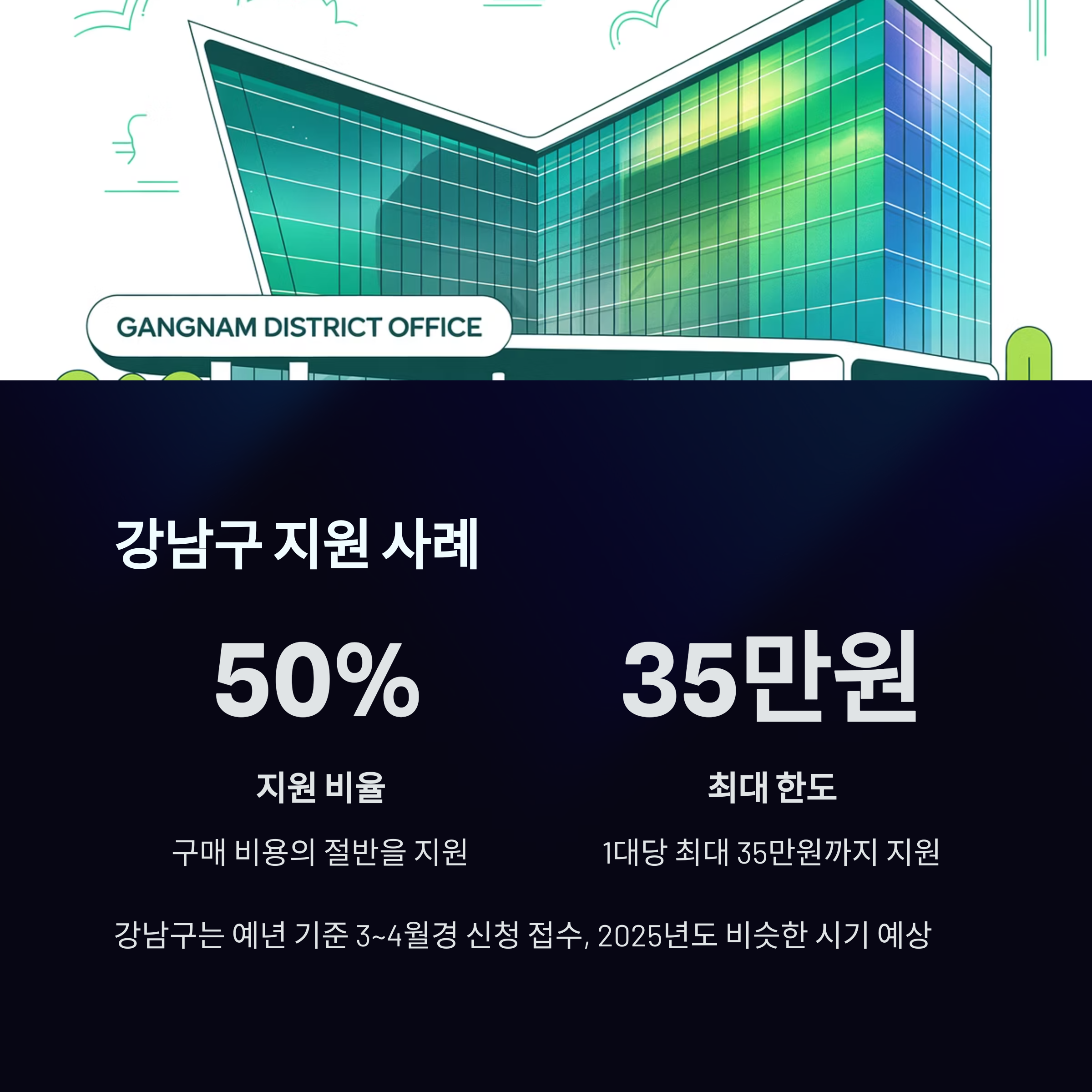 특히 강남구의 경우 예년 기준으로 보통 3~4월경에 신청을 받았으며, 2024년에는 구매비용의 50%(최대 35만원)를 지원했습니다. 2025년 사업도 비슷한 시기에 공고될 가능성이 높으니 미리 준비하는 것이 좋습니다.