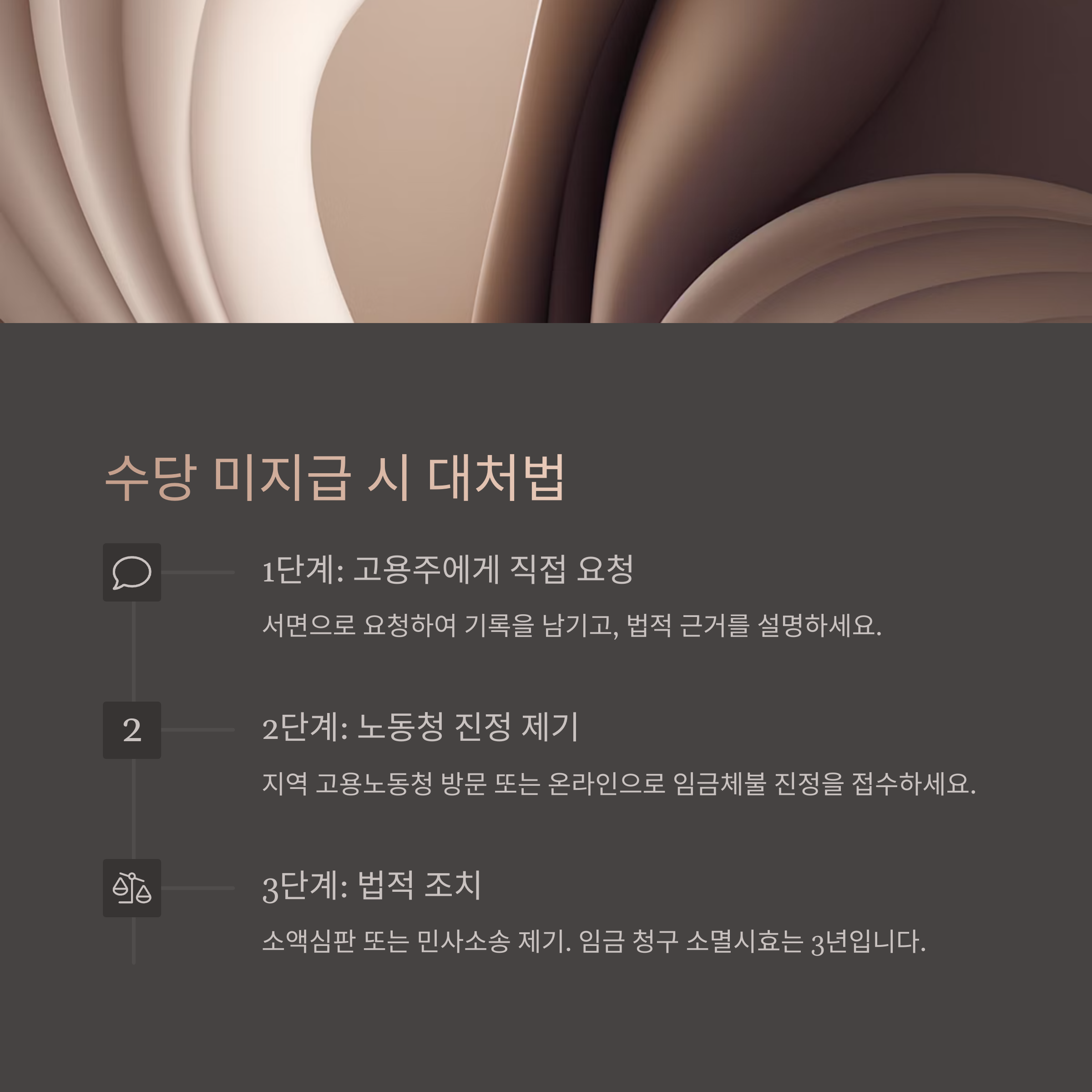 진정으로 해결되지 않는 경우, 소액심판 또는 민사소송을 제기할 수 있습니다. 2025년 기준으로도 임금 청구 소멸시효는 3년이니 유의하세요. 법률구조공단이나 노동위원회 등의 무료 법률상담 서비스를 활용하는 것도 좋은 방법입니다. 일용직 근로자의 날 수당은 적법한 권리이므로 포기하지 말고 끝까지 청구하세요. 최저임금 미지급의 경우, 고용주는 3년 이하의 징역 또는 2,000만원 이하의 벌금에 처해질 수 있습니다.