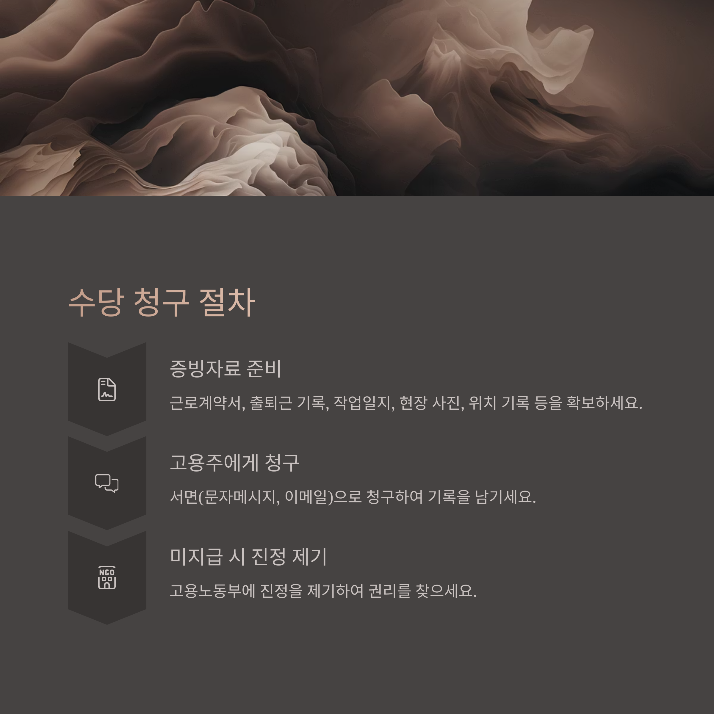 일용직 근로자의 날 수당을 청구할 때는 근무 사실을 증명할 수 있는 자료를 준비하는 것이 중요합니다. 출퇴근 기록, 작업일지, 현장 사진, 동료 증언 등을 확보해 두면 추후 분쟁 시 유리하게 활용할 수 있습니다. 특히 스마트폰 위치 기록이나 메시지 내용도 중요한 증거가 될 수 있습니다. 2025년부터는, 근로계약서 작성이 더욱 엄격하게 적용되어 이를 교부받지 않으면 500만원 이하의 과태료가 부과될 수 있습니다.