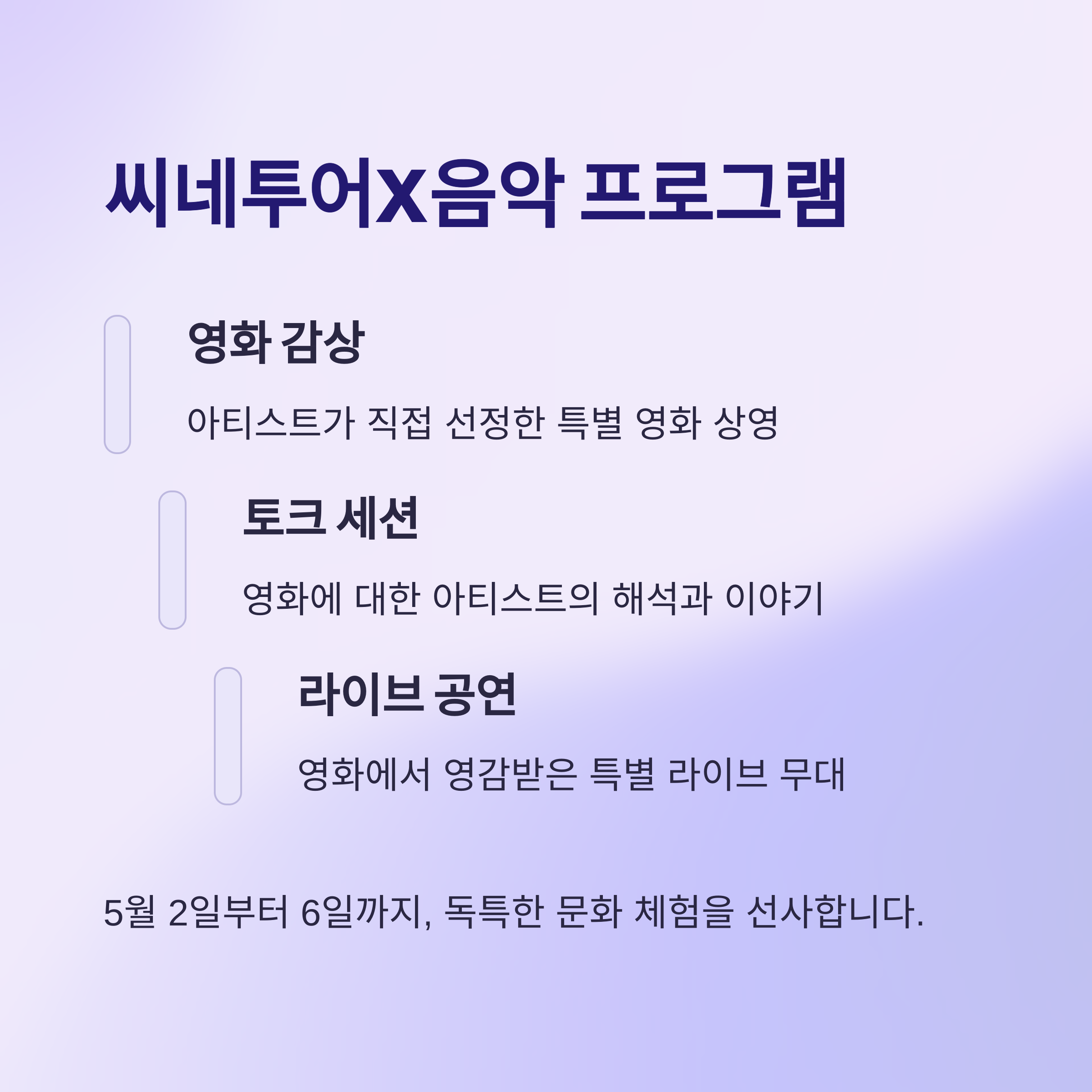 - 씨네투어X음악 프로그램 알아보기: 영화와 라이브 공연의 황홀한 만남