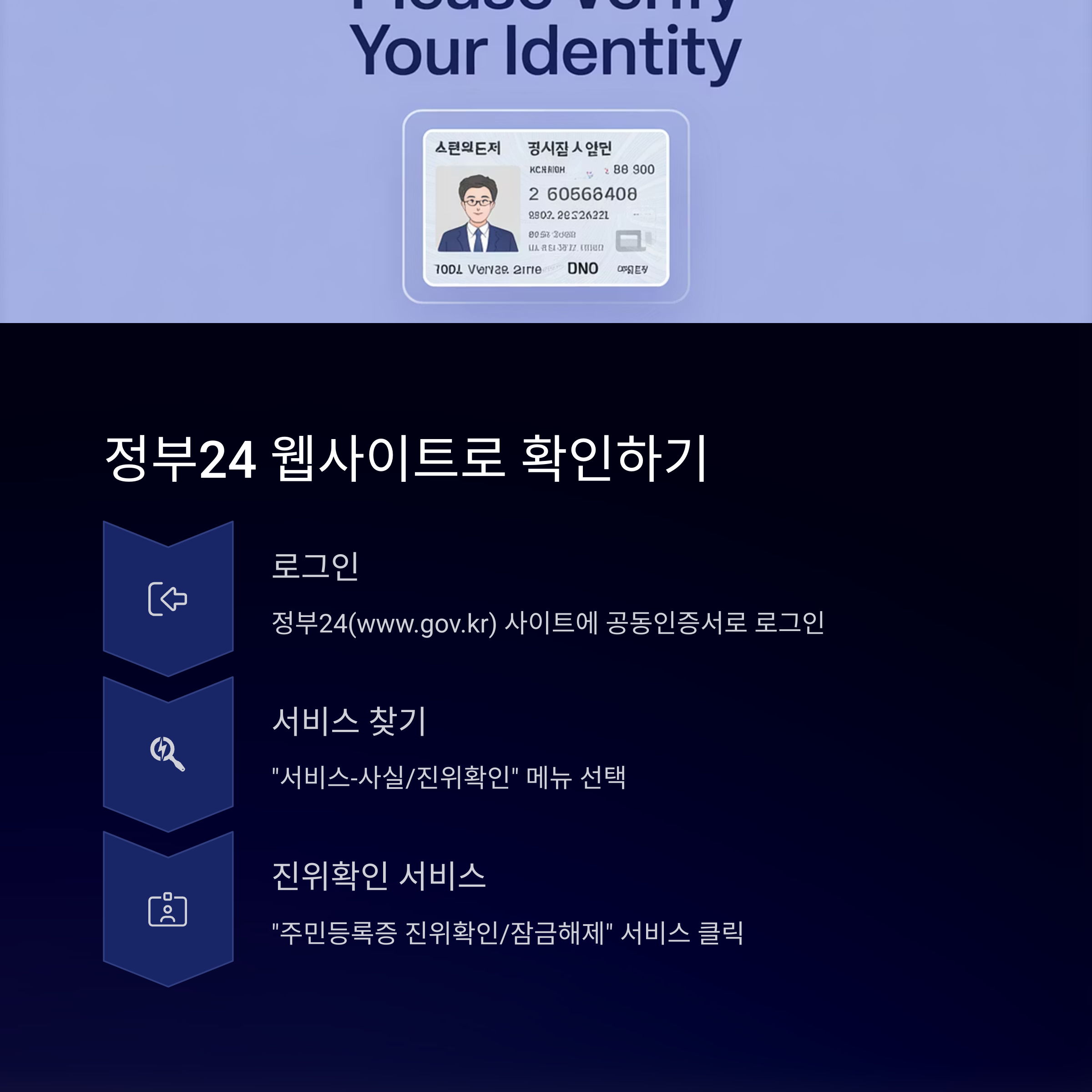 - 주민등록증 분실 시 즉시 분실신고 필요 (정부24 또는 가까운 주민센터에서 가능)
