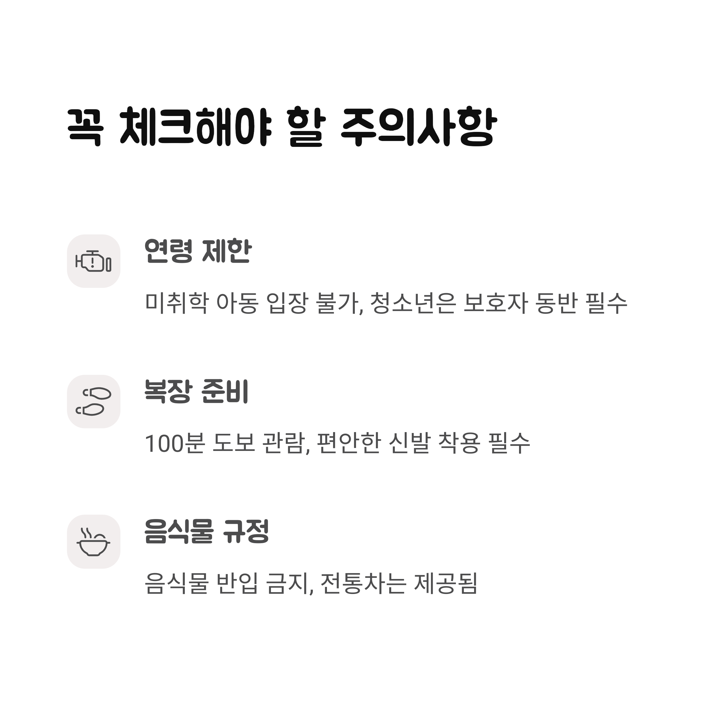 - 관람 동선이 돌길 위주라서 편한 운동화는 필수!