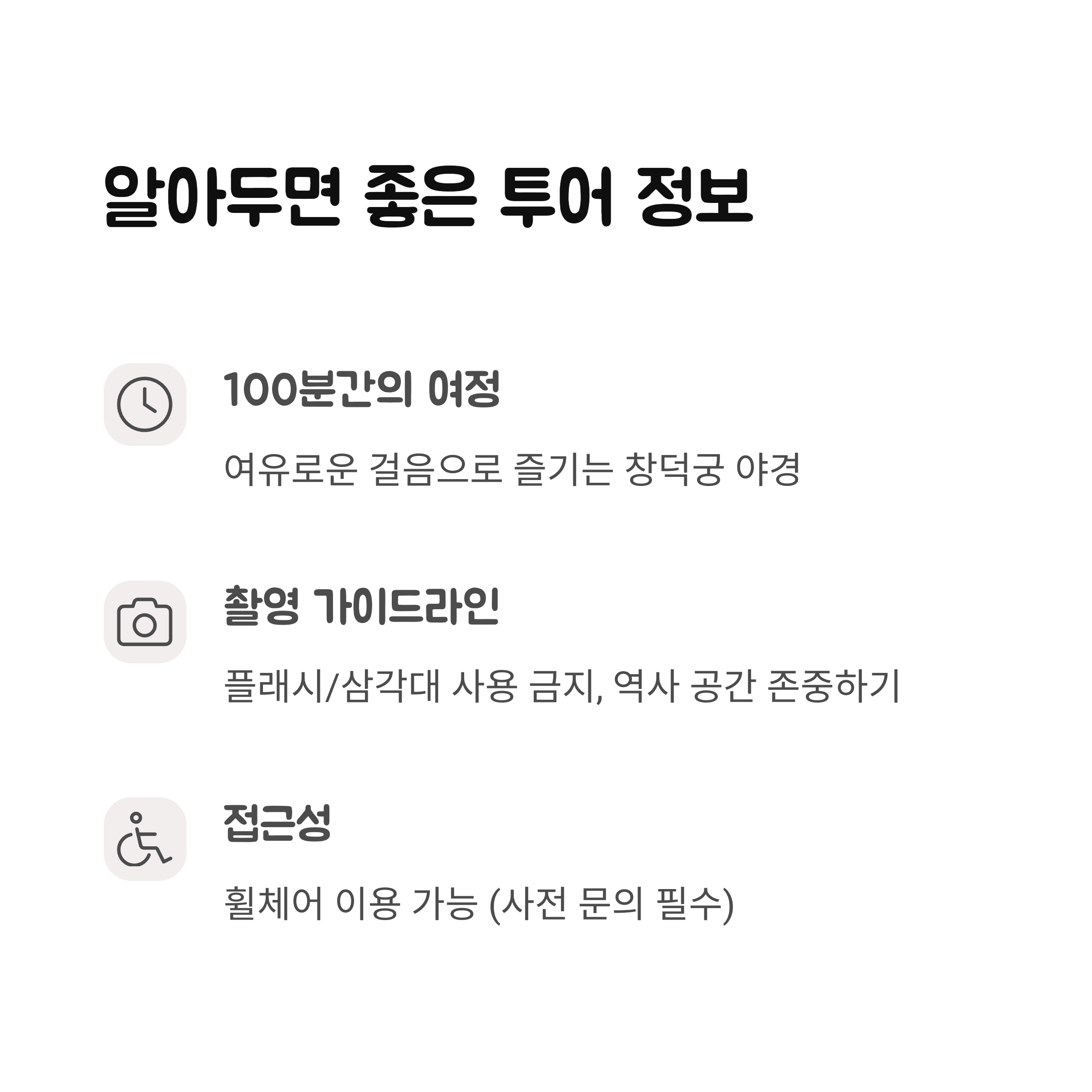 올해는 돈화문 공사로 인해 금호문에서 출발해 진선문, 인정전, 낙선재, 부용지 등을 돌아보는 일정으로 진행된다고 해요. 한 회차당 25명씩 소규모로 운영되기 때문에 집중도 높고, 설명도 잘 들을 수 있어 만족도가 높답니다.