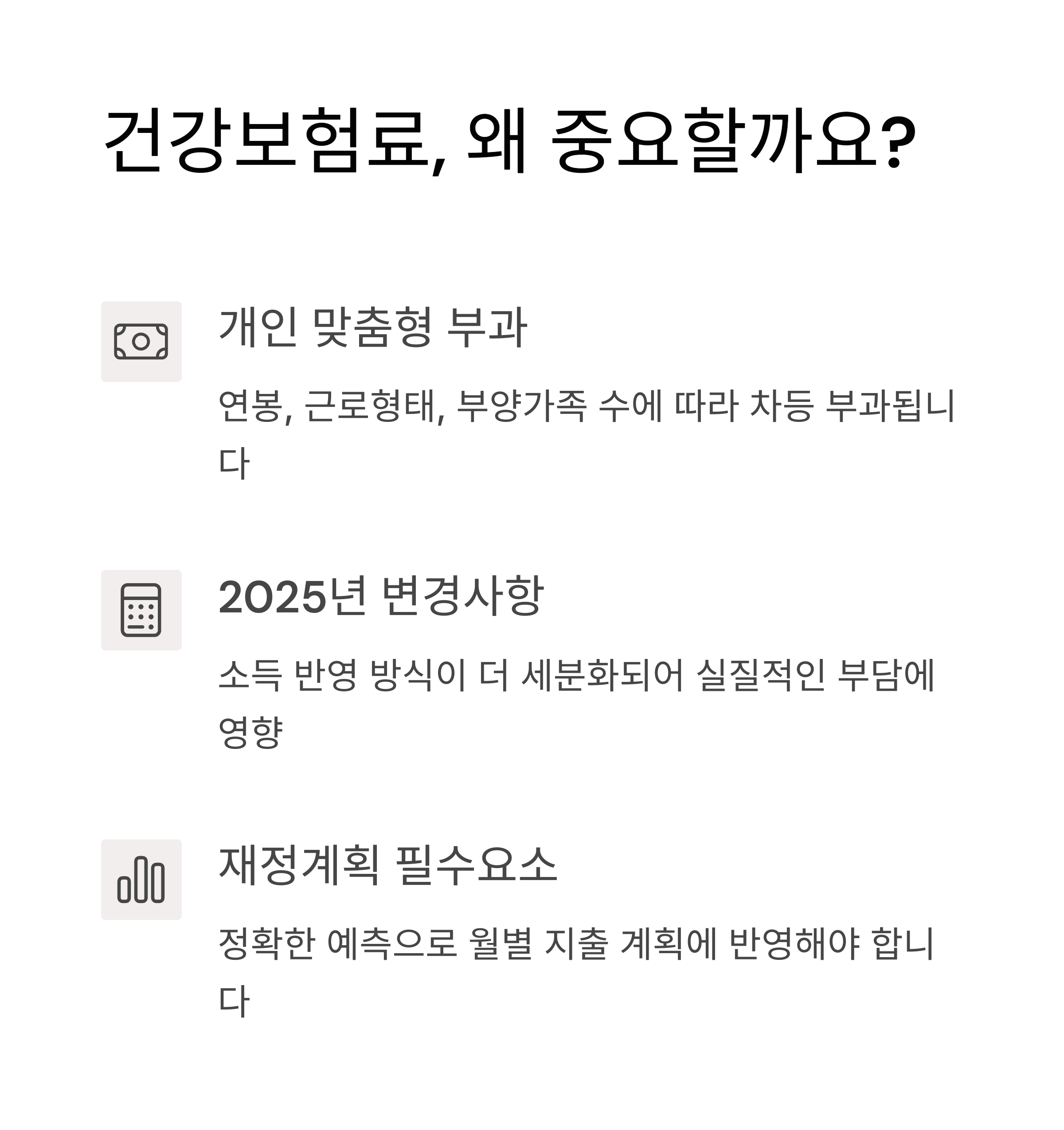 2025년부터 적용되는 건강보험 부과 기준은 더 세밀하게 소득을 반영하도록 바뀌었기 때문에, 정확한 계산이 매우 중요해졌습니다.